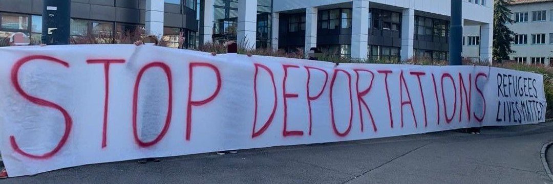 TR: Bizler İsviçre’deki mültecilerin koşullarını iyileştirmek ve haklarımızı kabul ettirmek için buradayız. Ayağa kalkın ve bize katılın. Biz hepimiz bu toplumun bir parçasıyız ve geleceğimiz için sorumluyuz. Bu nedenle adaletsizliğe ve ayrımcılığa karşı savaşıyoruz.
